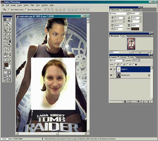 photo of a Laura Croft Tomb Raider poster. The trick will be to