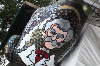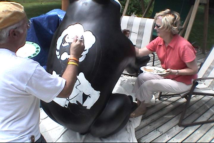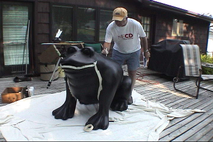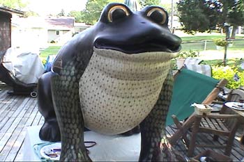 Click here to also visit the companion frog project we did for the Dubuque Greyhound Park & Casino. Gary and Linda painted two frogs... this one and another that is located in the Dubuque Greyhound Park & Casino lobby. The page includes photos and the latest movie!