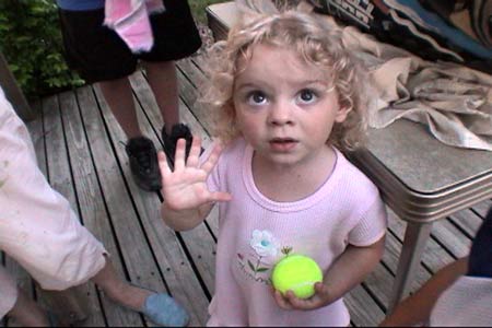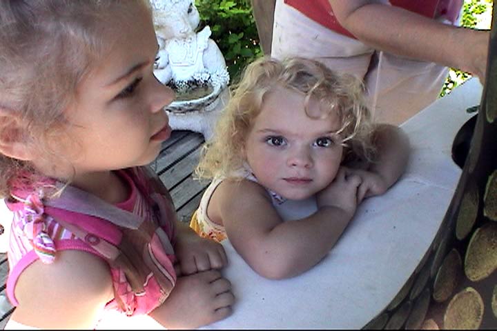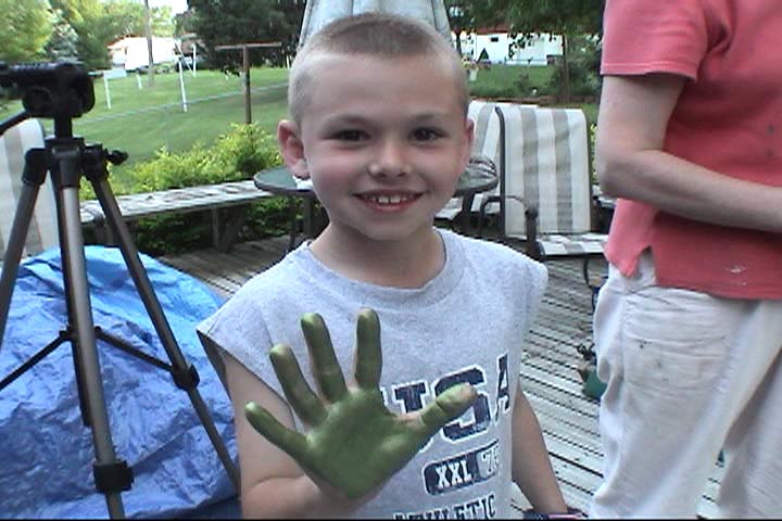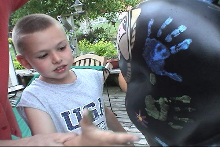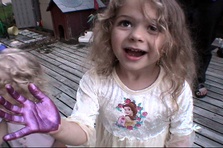 These are just two of our helpers. They will get a chance to paint something on the frog before it's finished. There are two boys down the block who also helped clean brushes, keep the dogs out of our paint, and helped move deck furniture. They'll make their marks on the frog as well. |