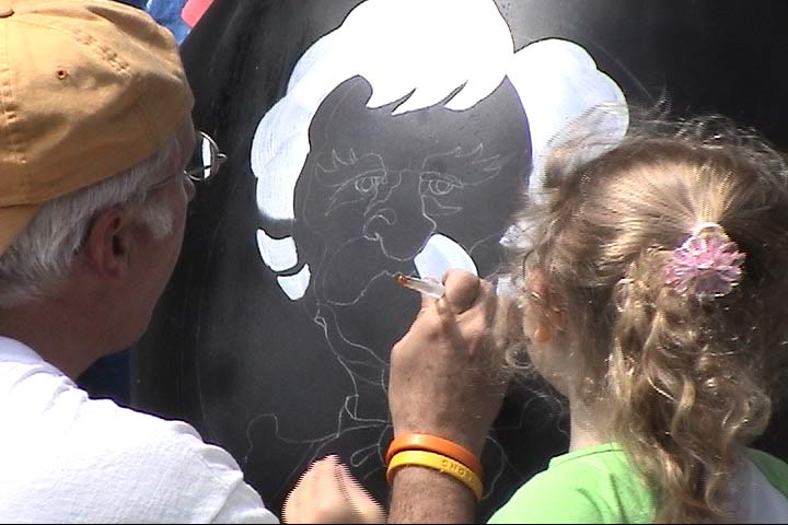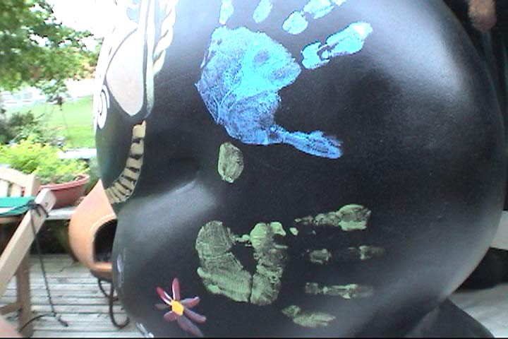 The frog is finished, and the kids get to add their own special marks. And this movie contains the installation of the project at Cottingham & Butler. |