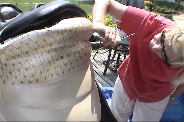 I've masked off the outline for the chest portion that Linda will be painting. She is one of the best decorative painters