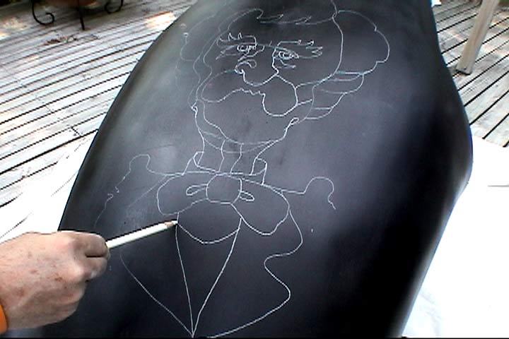 As you can see by the photos and films, we've made tremendous progress in only a week's time. Not bad when one considers we didn't have a real plan, just instinct and a feeling. We worked to our best abilities. Linda is the decorative painter and she has a keen eye for color. I am the figural painter, and I have an eye for design.