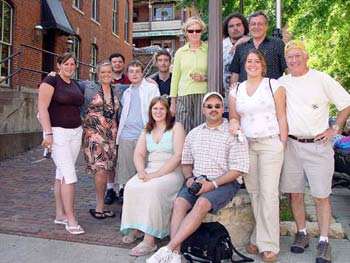 | This is the class of 2005 - Session 2. It's our traditional group shot in Galena, Illinois. During our Galena shooting session students are given a photo-journalism assignment to capture the essences of the Galena experience. Several excellent shots are featured in their portfolios below. There are also excellent shots from our Dubuque Riverfront, two arboretums (one in Dubuque and one in Madison, Wisconsin, and the famous Henry Vilas Zoo in Madison among other places in our Tri-State Area. |